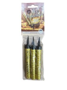 3 x Gold Holographic Candles, each emitting a lovely silver fountain for approximately 35secs. These High quality Ice Fountains from Vulcan are better than the competition. We recently tested 3 or 4 brands next to each other and found these had the best and most consistent performance of them all.