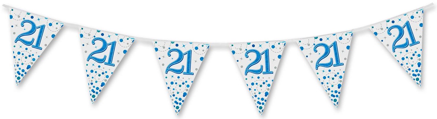 Party Bunting 21st Sparkling Fizz Birthday Blue Holographic 11 flags 3.9m
